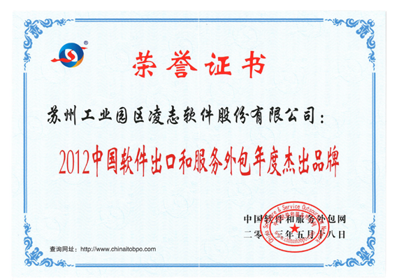 2013年5月,第九屆中國(guó)軟件出口(服務(wù)外包)排行榜發(fā)布會(huì)在寧海召開(kāi)。十年的發(fā)展,凌志軟件在軟件外包上取得了喜人的成績(jī),此次榮獲“2012年中國(guó)軟件出口和服務(wù)外包杰出品牌”和“2012中國(guó)軟件出口企業(yè)排名第8名”的稱號(hào)。