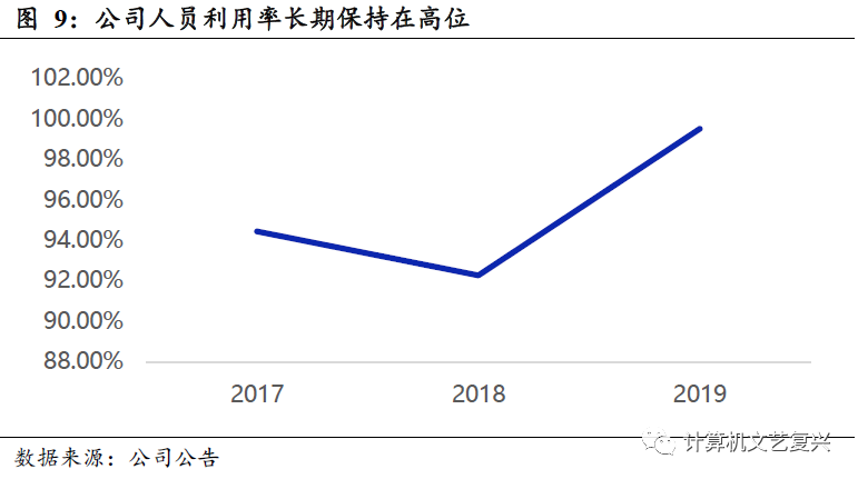 工作量可提前計(jì)劃,人員利用率高。對(duì)于軟件服務(wù)公司而言,一個(gè)非常重要的指標(biāo)就是人員利用率,也就是在這個(gè)行業(yè)內(nèi)的“產(chǎn)能利用率”。當(dāng)一個(gè)新項(xiàng)目落地后是否需要招人,以及項(xiàng)目結(jié)束后釋放出的人手能否快速投入下一個(gè)項(xiàng)目,是衡量一家軟件服務(wù)公司管理能力的關(guān)鍵。若出現(xiàn)產(chǎn)能與需求不匹配的現(xiàn)象,很可能導(dǎo)致企業(yè)短期利潤(rùn)出現(xiàn)大幅波動(dòng)。然而,日本的軟件開發(fā)有著非常嚴(yán)密的頂層設(shè)計(jì)理論,會(huì)將一個(gè)系統(tǒng)的全生命周期任務(wù)規(guī)劃好后再進(jìn)行實(shí)施,一般一個(gè)系統(tǒng)后續(xù)維護(hù)的投入是初次上線投入的4-5倍左右。因此對(duì)于對(duì)日的外包商而言,客戶的需求是可以提前預(yù)測(cè)到的,這大大降低了匹配產(chǎn)能和需求的難度,使得公司的人員利用率長(zhǎng)期保持在95%以上。