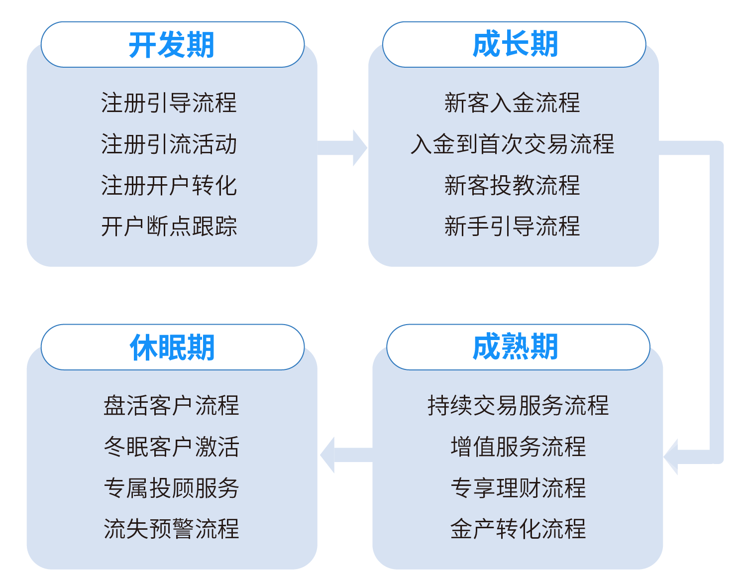 支持客戶全生命周期上百種運營場景,實現(xiàn)四大用戶旅程: