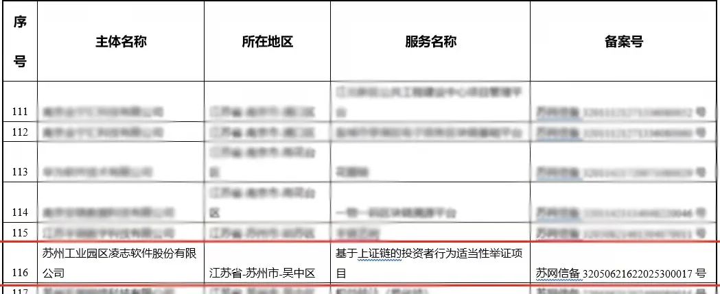 近日,國家互聯(lián)網信息辦公室發(fā)布了第七批境內區(qū)塊鏈信息服務備案編號的公告,凌志軟件“基于上證鏈的投資者行為適當性舉證項目”成功完成備案。