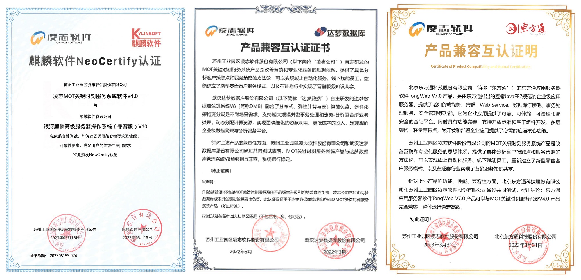 近期,凌志軟件拳頭產品“凌志MOT關鍵時刻服務系統(tǒng)”獲得麒麟軟件NeoCertify認證,這是繼該產品在達夢認證與東方通認證之后,完成的第三個國產化兼容性互認證。